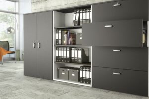 - Un armario alto y estrecho puede ser perfecto para un baño con espacio limitado. Estos armarios ofrecen amplio espacio de almacenamiento vertical para toallas, papel higiénico y productos de limpieza, sin ocupar demasiado espacio en el suelo.